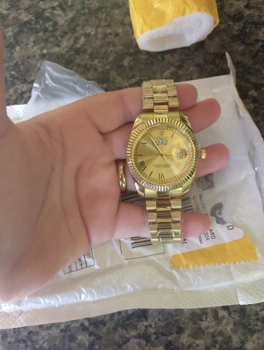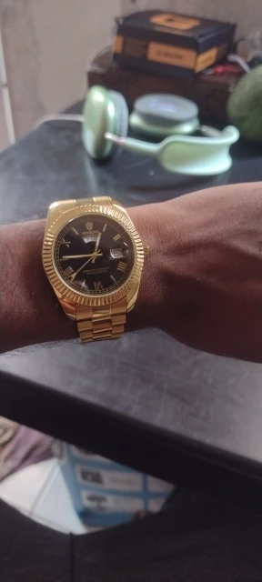 relógio top, muito bonito e de boa qualidade já é o segundo que eu compro e veio tudo certinho, a entrega foi super rápida. podem comprar sem medo que não irão se arrepender.