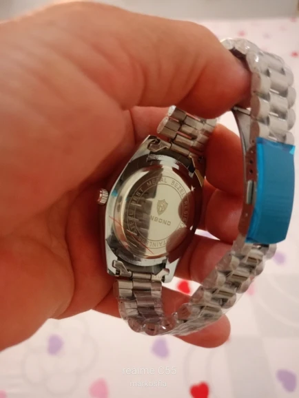 O relógio é bonito, mas o único problema que encontrei foi que, para encurtar a pulseira, precisei levá-lo a um relojoeiro, já que não consegui encontrar pinos para remover. No entanto, eles conseguiram fazer isso por um custo adicional.