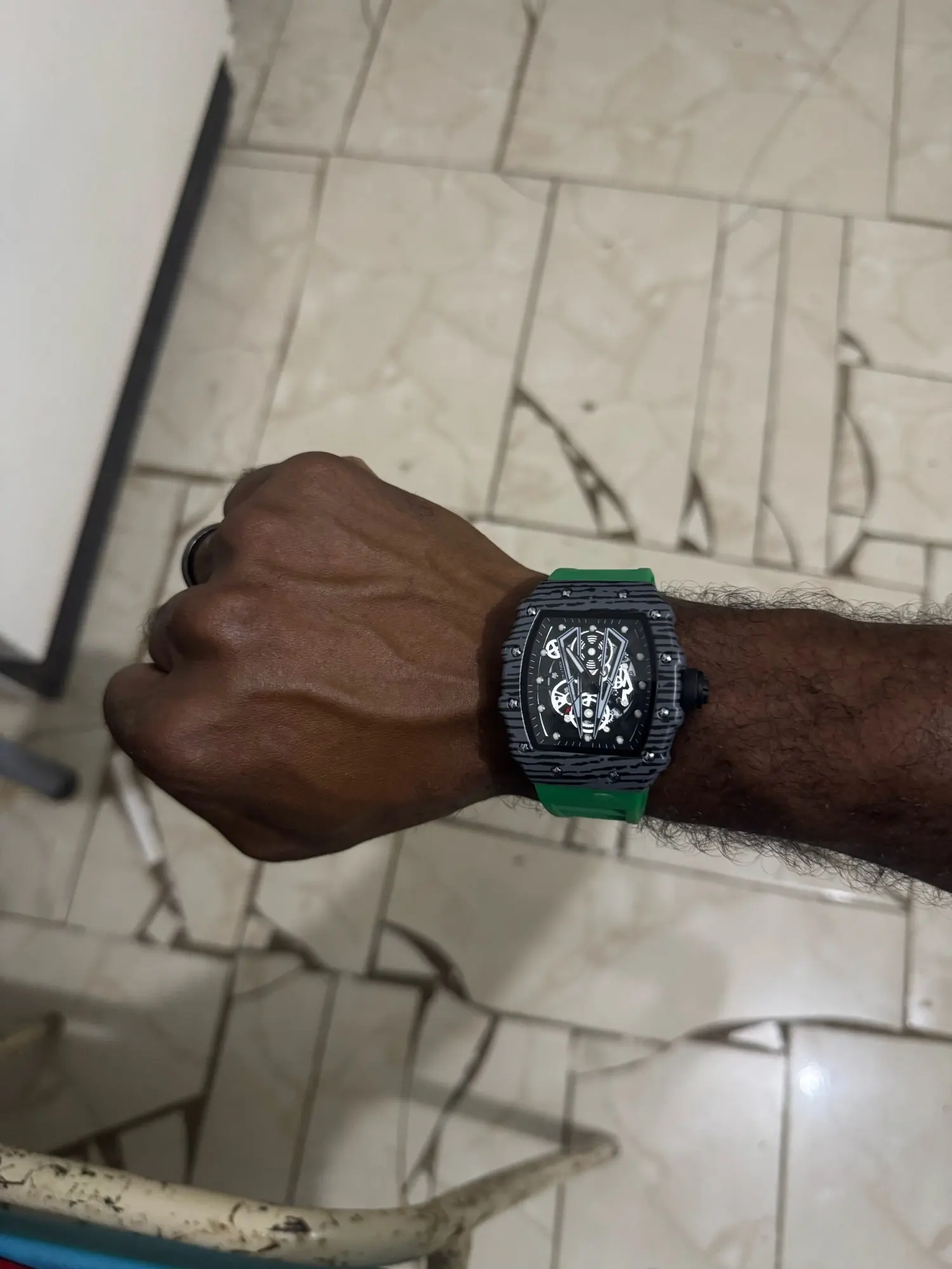 chegou dentro do prazo, produto fiel as fotos, muito bonito e robusto. Achei a pulseira um pouco dura, mas não incomoda no pulso. A aparência é de relógio bem mais caro.