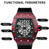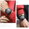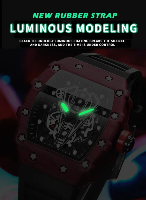 Fabricado com silicone premium, o relógio se ajusta confortavelmente ao pulso, mesmo durante usos prolongados. Seja para esportes ou momentos casuais, o Relógio Masculino BINBOND foi projetado para acompanhar estilos de vida ativos com precisão e estilo.