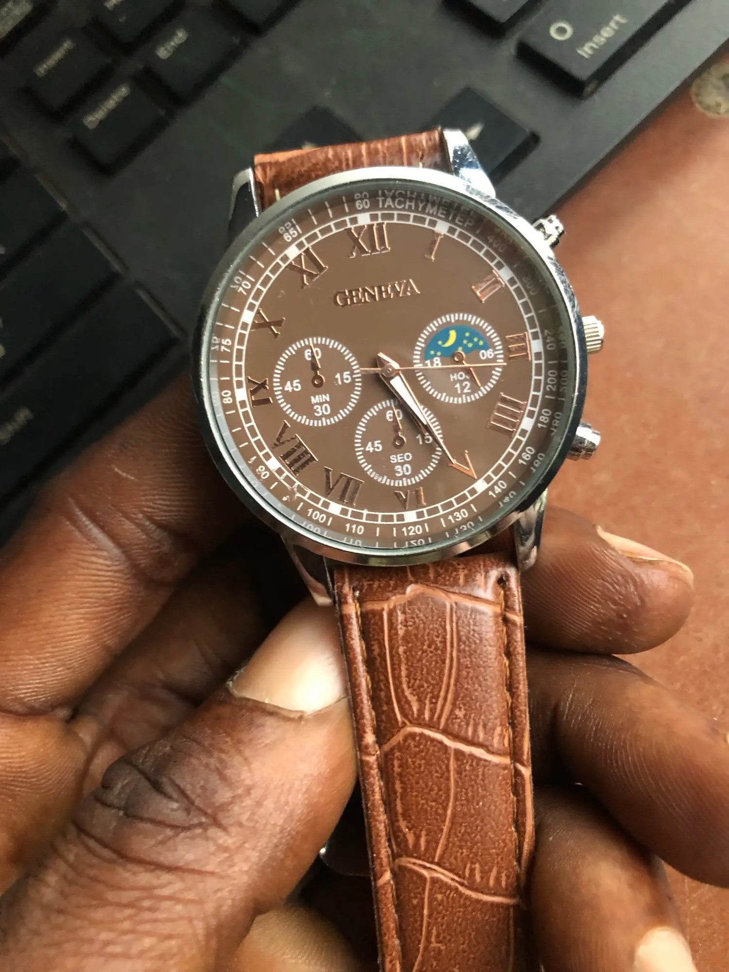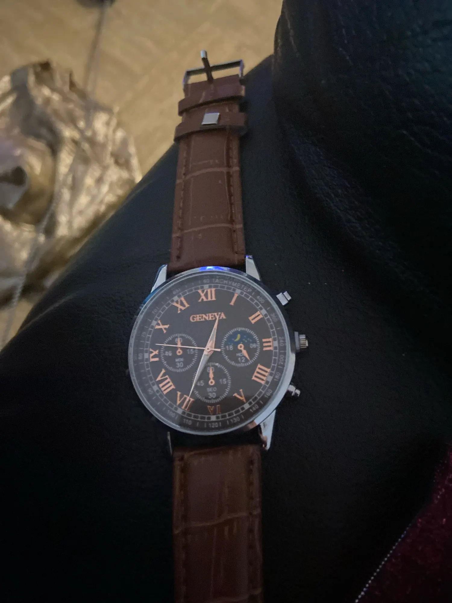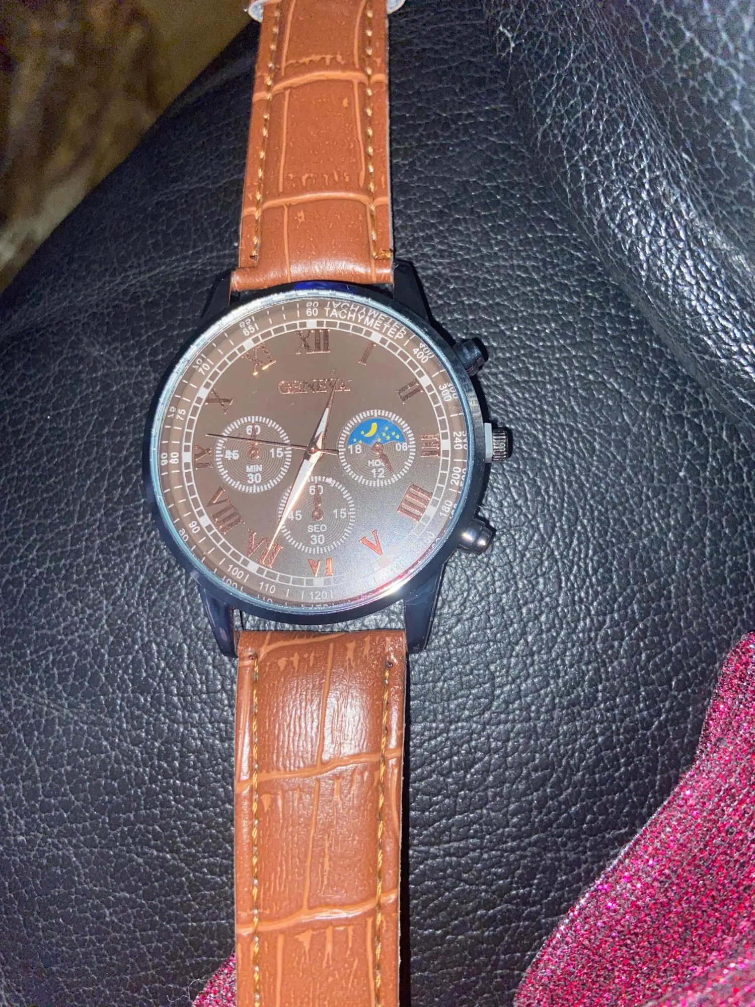 Bonito e elegante pelo preço… Além da moldura para ajustar a hora, os outros dois botões são falsos, até os três mini mostradores são apenas estéticos. De resto, é bom.