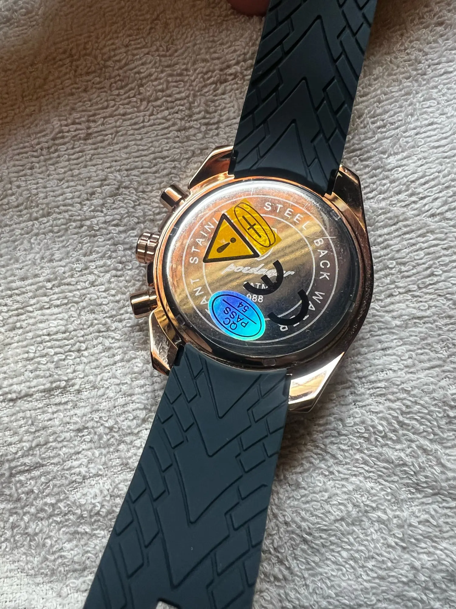 A superfície de vidro do relógio pode ser facilmente removida. A precisão do ajuste é perceptível.