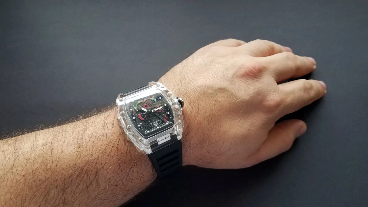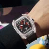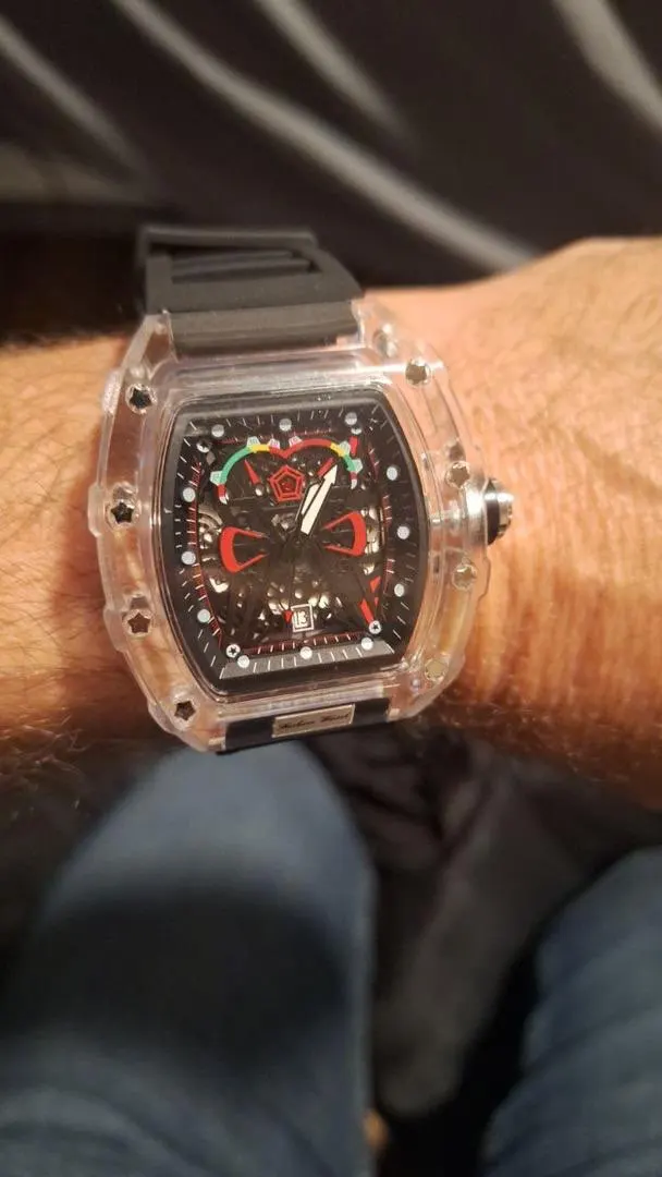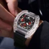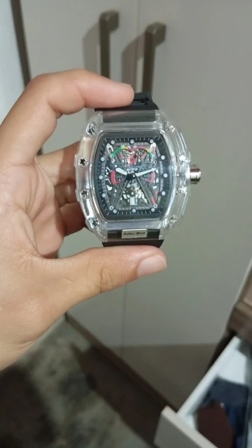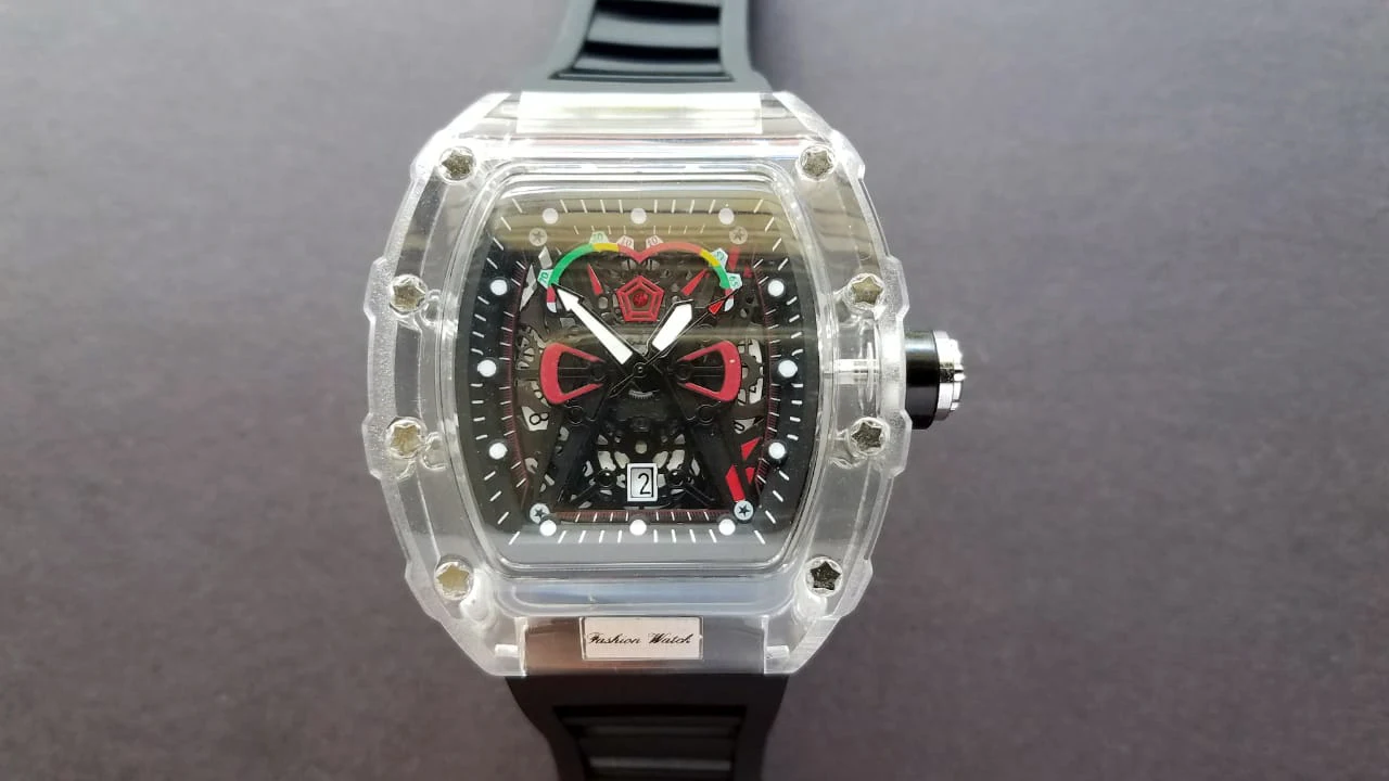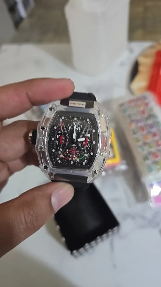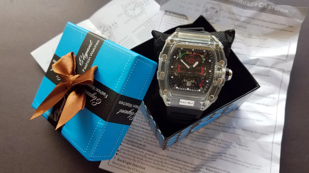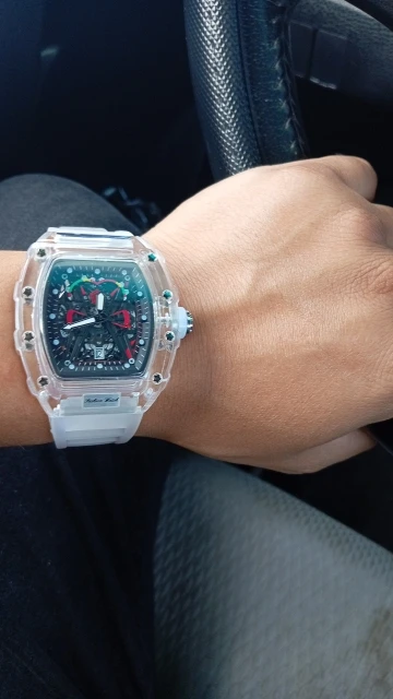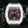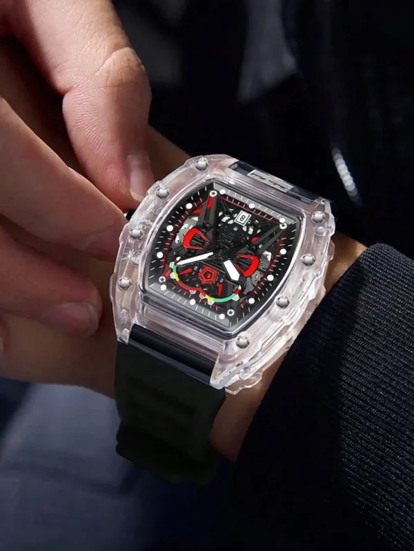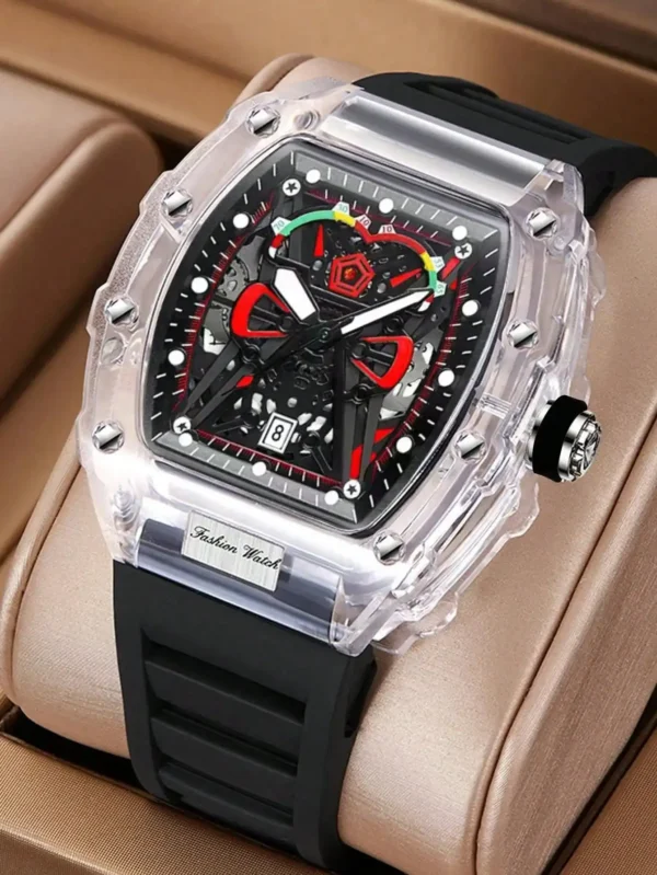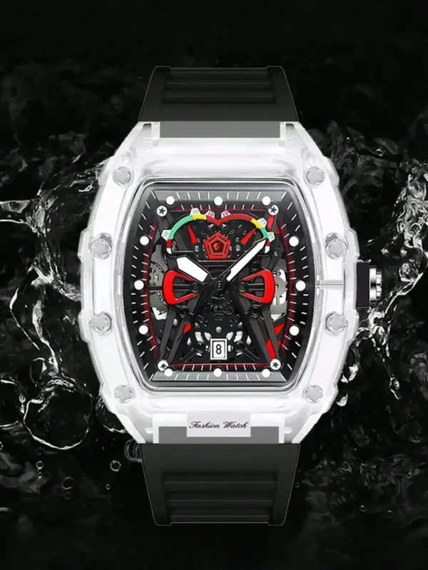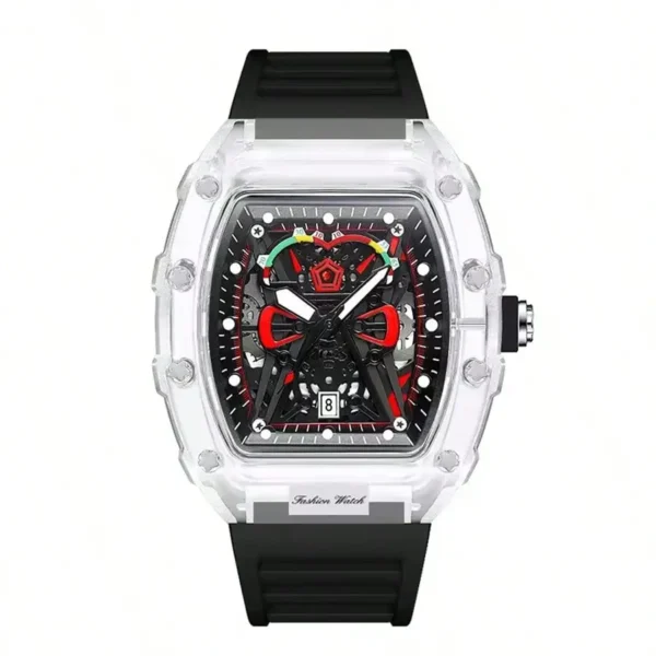 Descubra o relógio de quartzo masculino com caso transparente e pulseira de silicone, projetado para trazer uma combinação perfeita de estilo esportivo e praticidade. Este relógio é mais que um acessório; é sua conexão com o tempo.