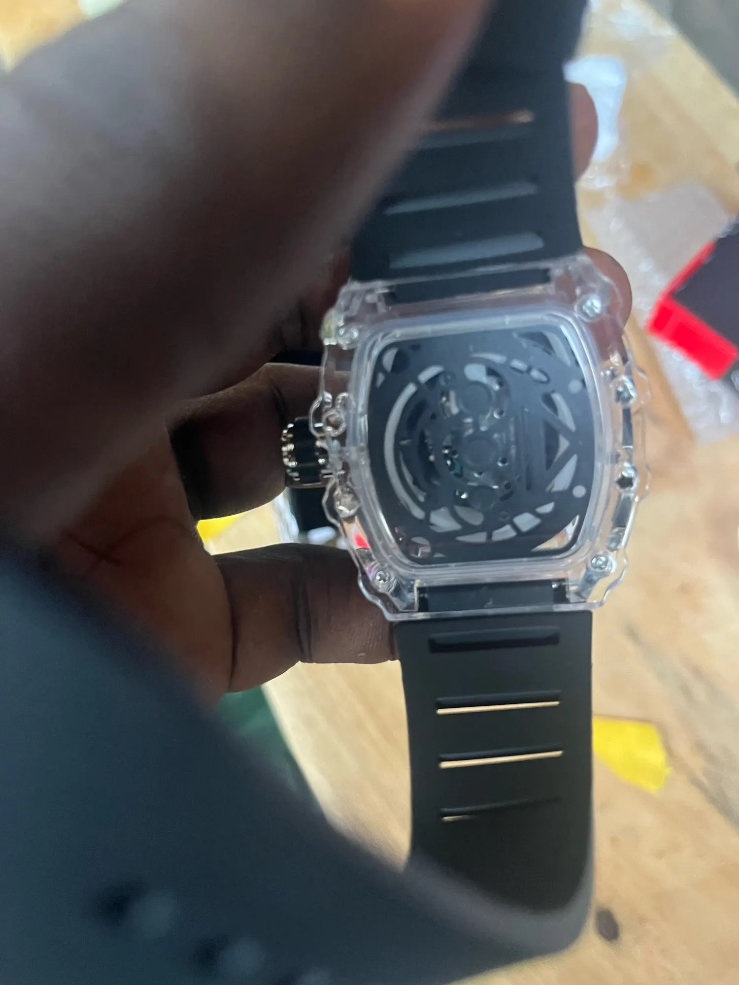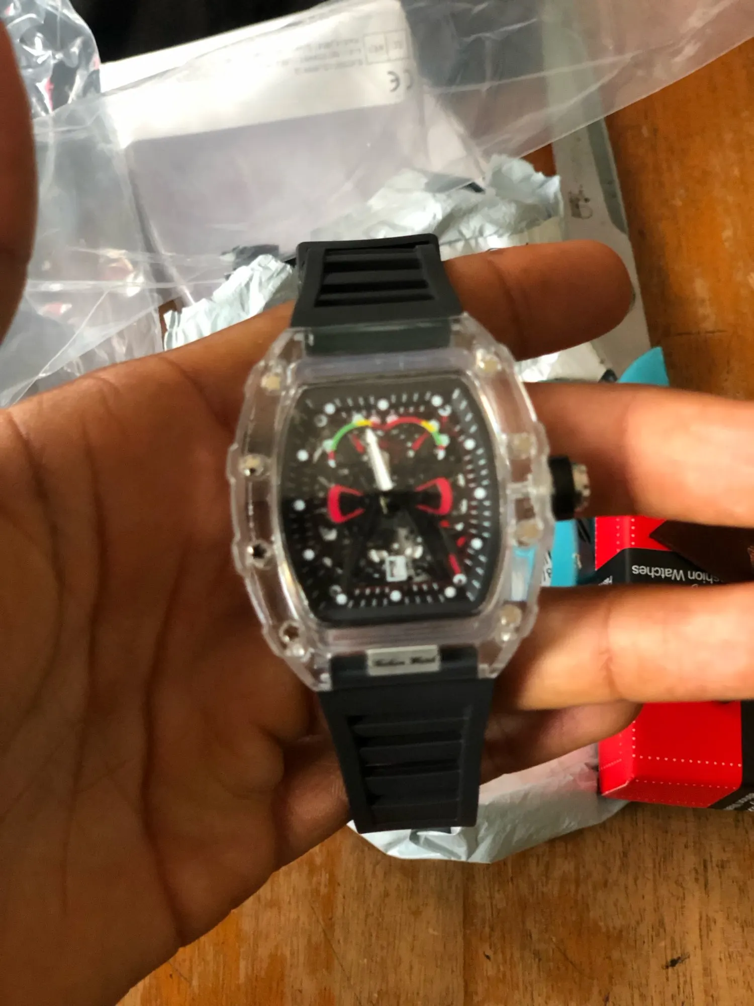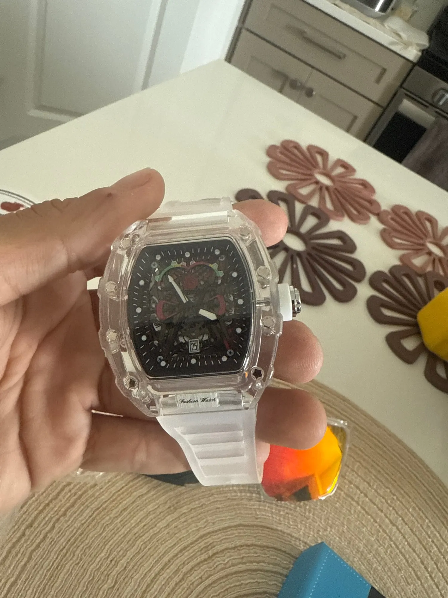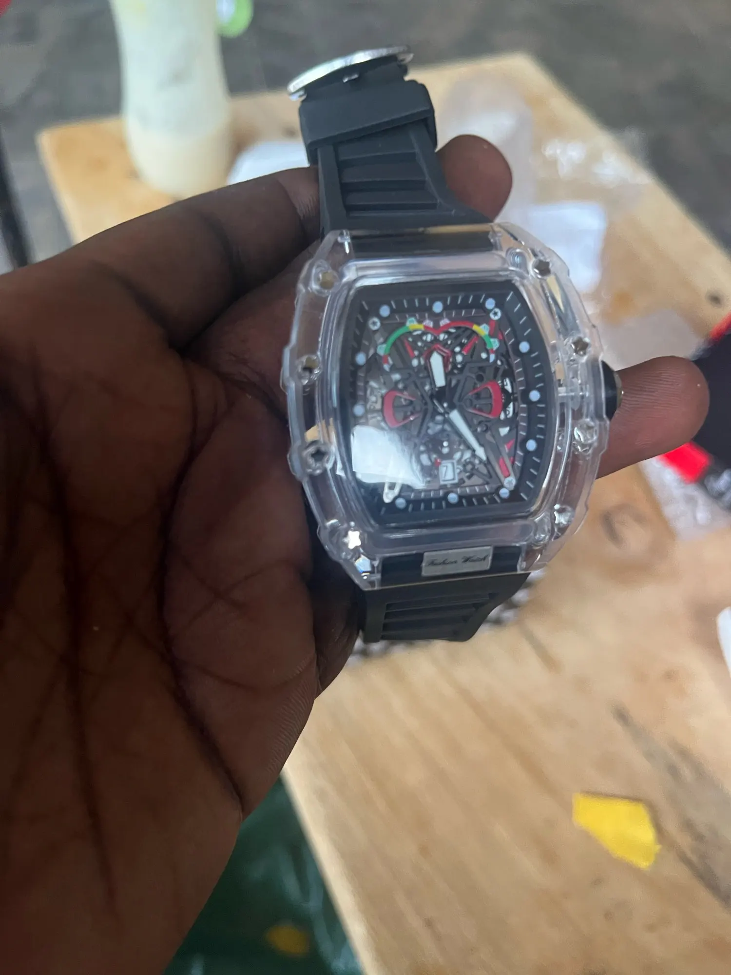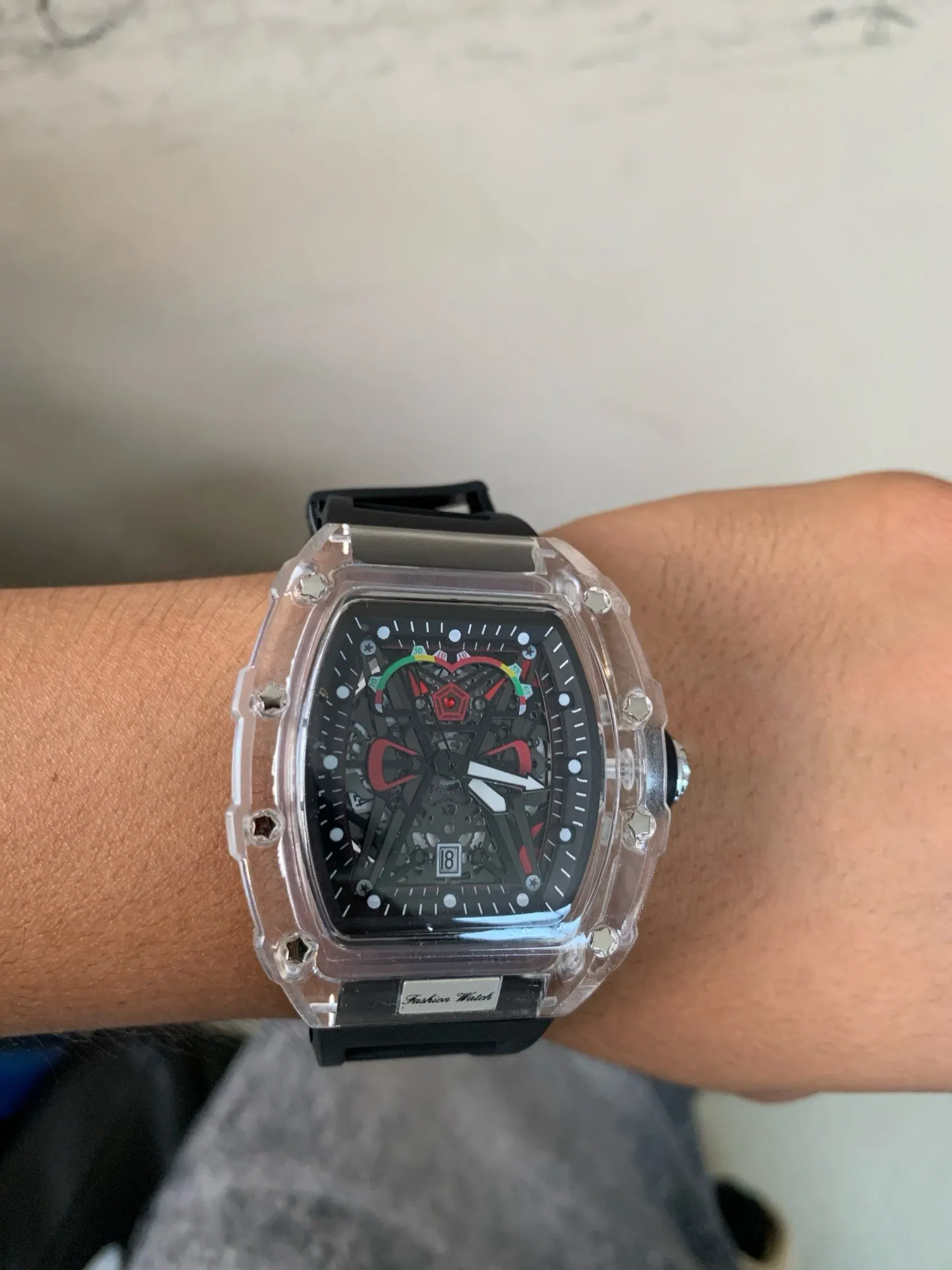 Descubra o relógio de quartzo masculino com caso transparente e pulseira de silicone, projetado para trazer uma combinação perfeita de estilo esportivo e praticidade. Este relógio é mais que um acessório; é sua conexão com o tempo.