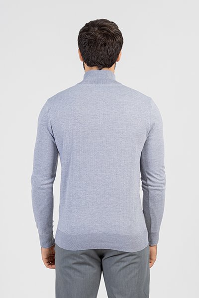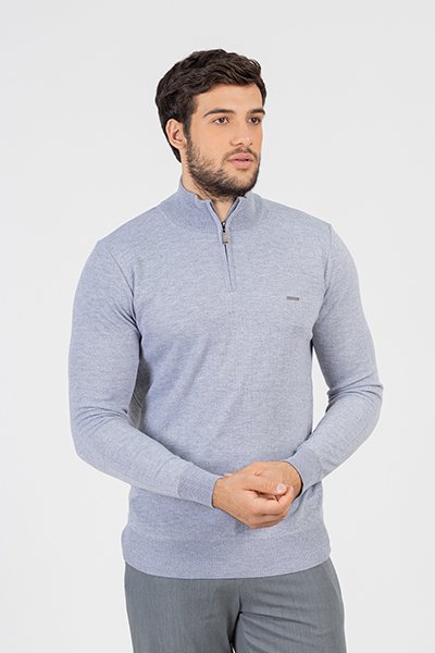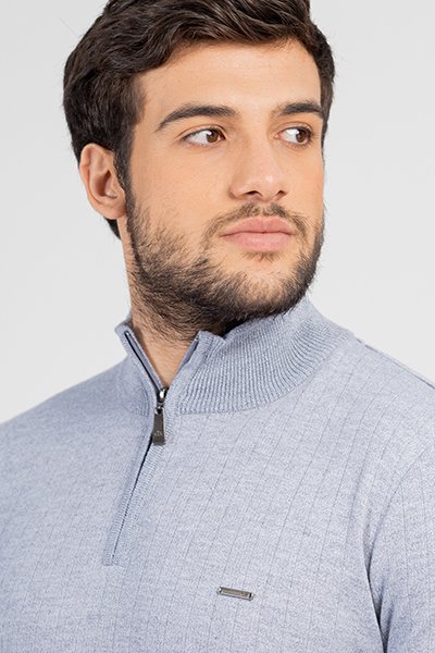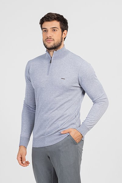 Suéter Masculino Dixie – Sofisticação Cinza com Gola Alta e Zíper