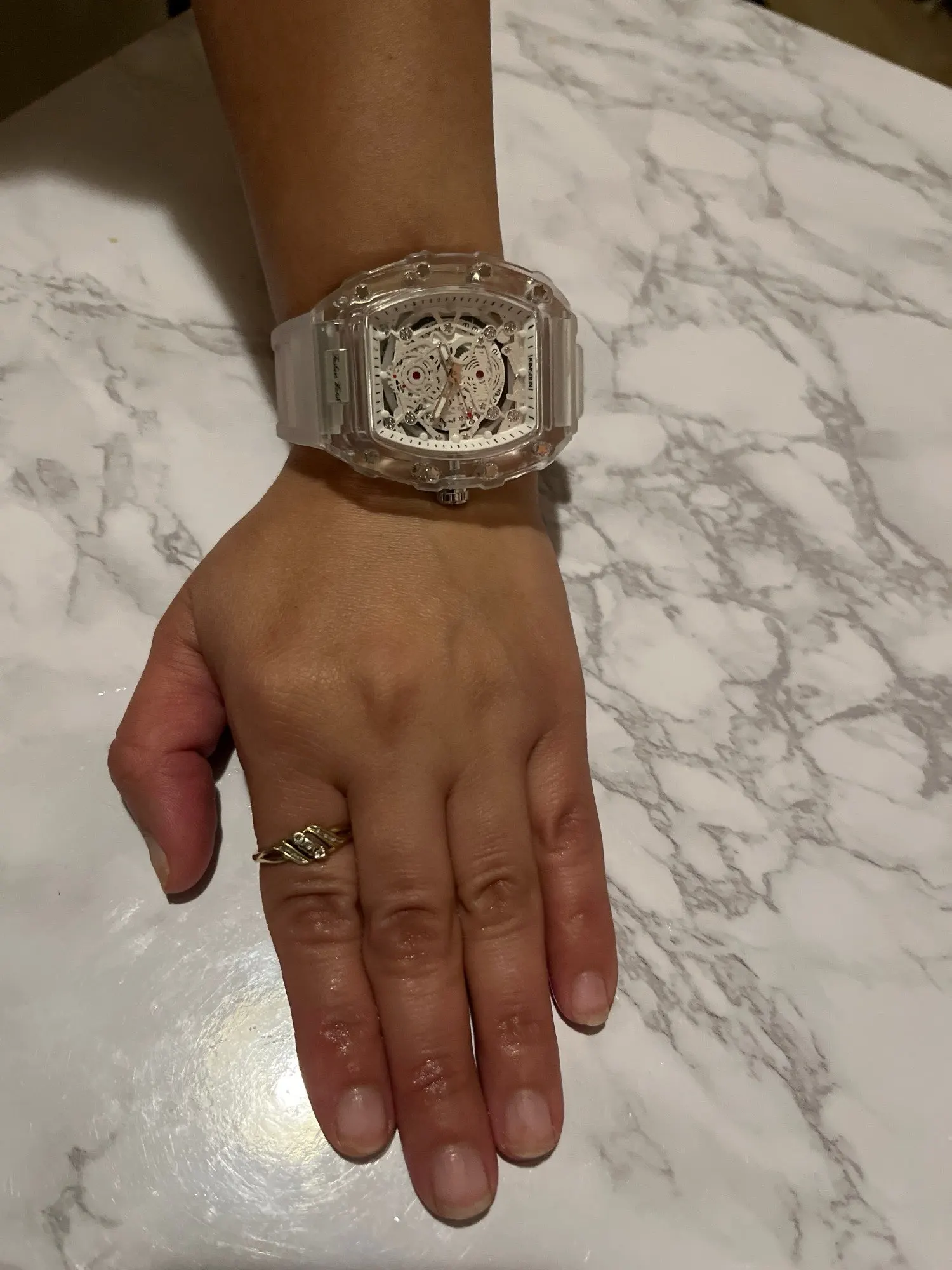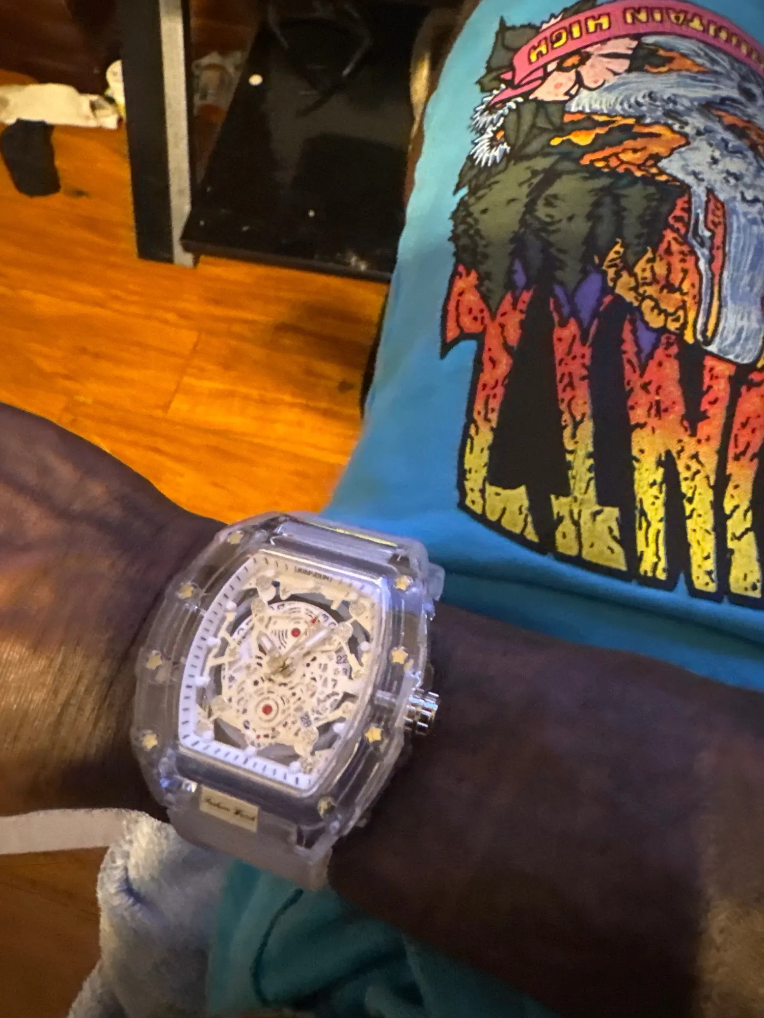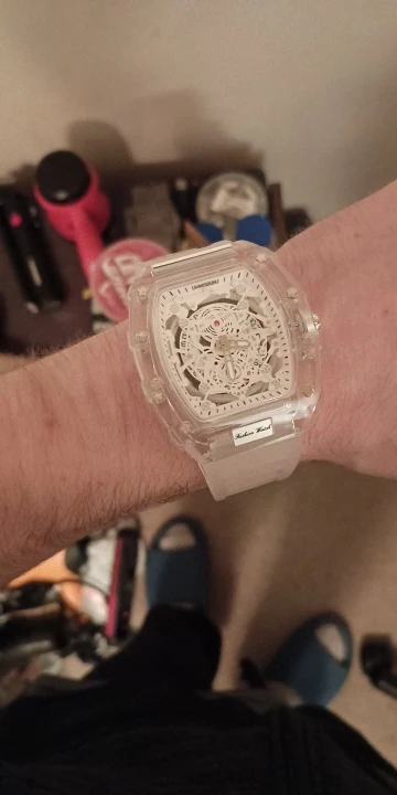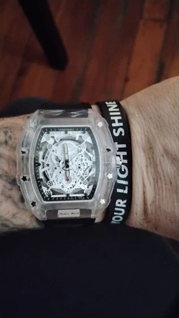 Quando eu digo “lindo”, é porque realmente é. elogios o dia todo. Parece um relógio Richard Mille de verdade. Eu digo às pessoas que é 700 dólares, e elas acreditam todas as vezes. Sou um cara grande e isso se ajusta ao meu pulso, mas ainda assim parece grande. Eu sugiro comprar todos eles.