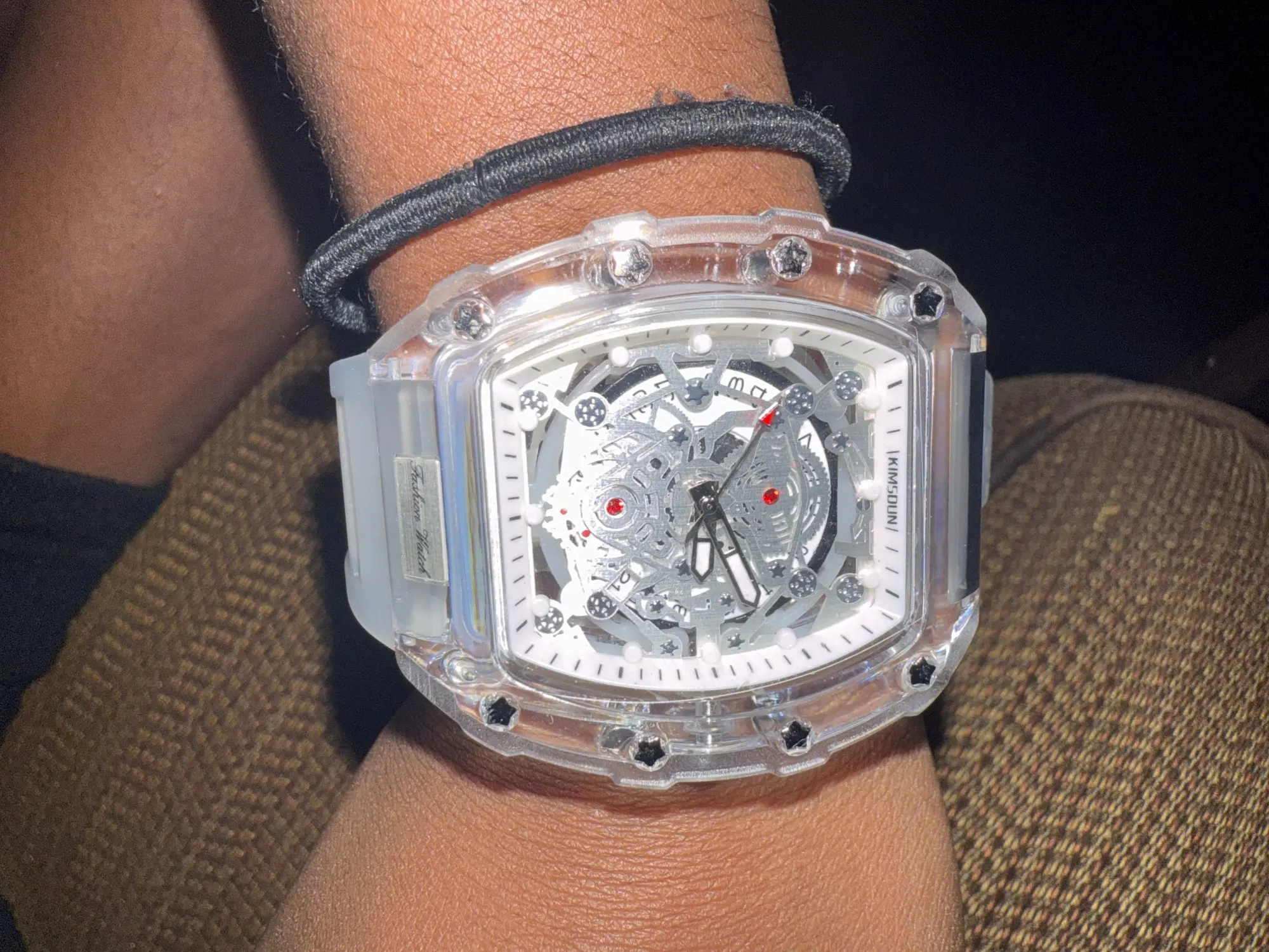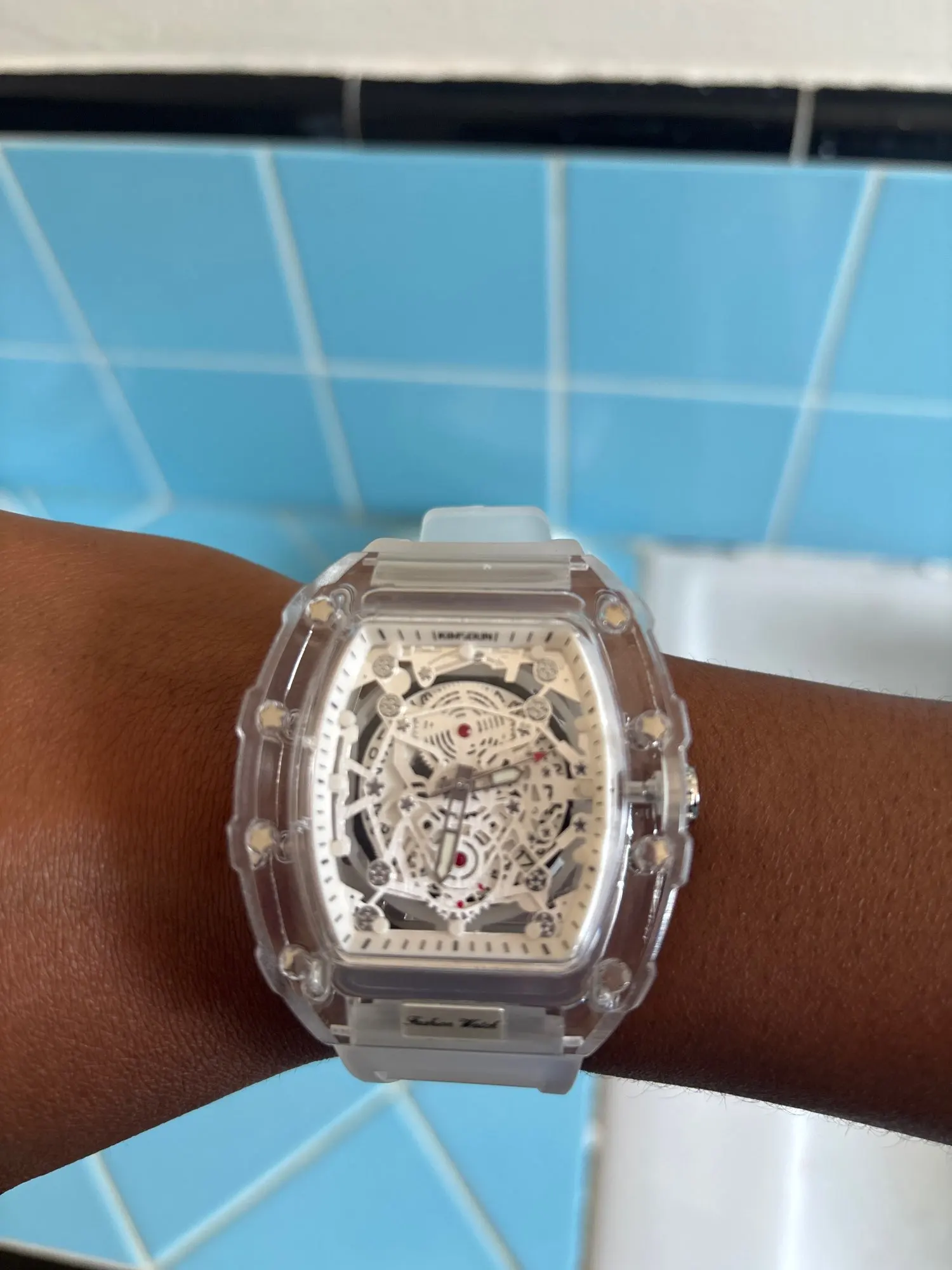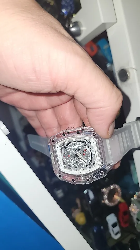 Perfeito, é um produto muito bom. Parece um Richard Mille. É incrível, o melhor do Aliexpress, muito muito muito muito bom.