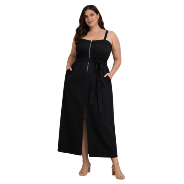 Decote Personalizável: O fechamento em zíper frontal permite que você regule a profundidade do decote, adaptando o look para uma proposta mais casual ou mais ousada.